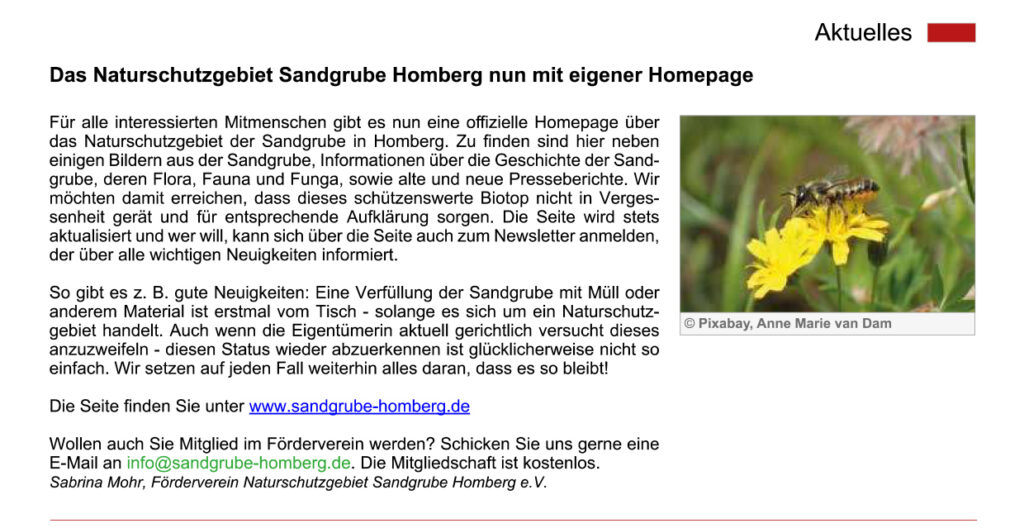 Hier finden Sie neue und alte Presseberichte über die Sandgrube. Die Seite wird ständig aktualisiert.
